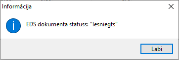 Šo darbību var izvēlēties, ja datu nosūtīšanu un iesniegšanu uz EDS sistēmu veic no programmas, t.i., papildus neizmanto EDS sistēmu.