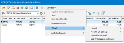 Atskaites → Algas → VSAOI → Ziņas par darba ņēmējiem → Darbības → EDS API