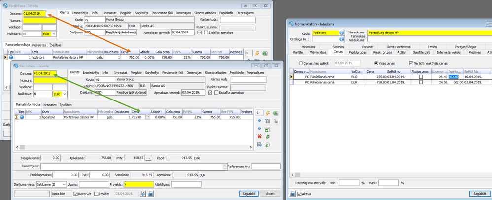 Lai iedarbinātu šo mehānismu, jādodas uz Sistēma - Uzstādījumi - Kontroles un vides parametri, kur pārdošanas cenu sadaļā jāmeklē pārlases parametri.