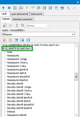 | Informācija par darbinieka amatu ir atrodama zem grupas R.SL.AMATS. Ieteicams izdrukā ievietot amata nosaukumu dzimtē atbilstošajā locījumā (Piebilde: ja rīkojuma/vienošanās veidā tika atzīmēts zilais lauks “Slodze”) | |