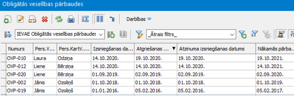 Šeit būs redzami ieraksti arī par darbiniekiem, kuriem nav uzģenerēta OVP karte.