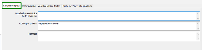 Pamatdati → Personāla uzskaite → Personas kartītes → Darba aizsardzībai → Obligātās veselības pārbaudes