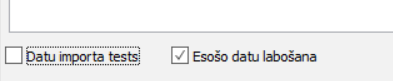 Lai pārliecinātos par faila pareizību ieteicams veikt datu labošanu testa režīmā. Šāds imports veiks datu labošanu un pārbaudes, bet pēc tam darbības atcels un nekādas izmaiņas sistēmā netiks veiktas.