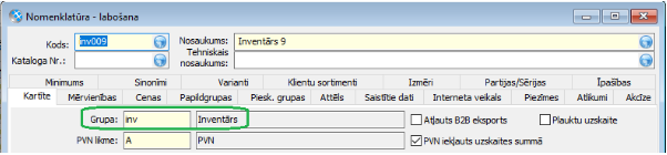 Katra konkrētā pamatlīdzekļa un nomenklatūras kartīte jāpievieno kādai no definētajām grupām.