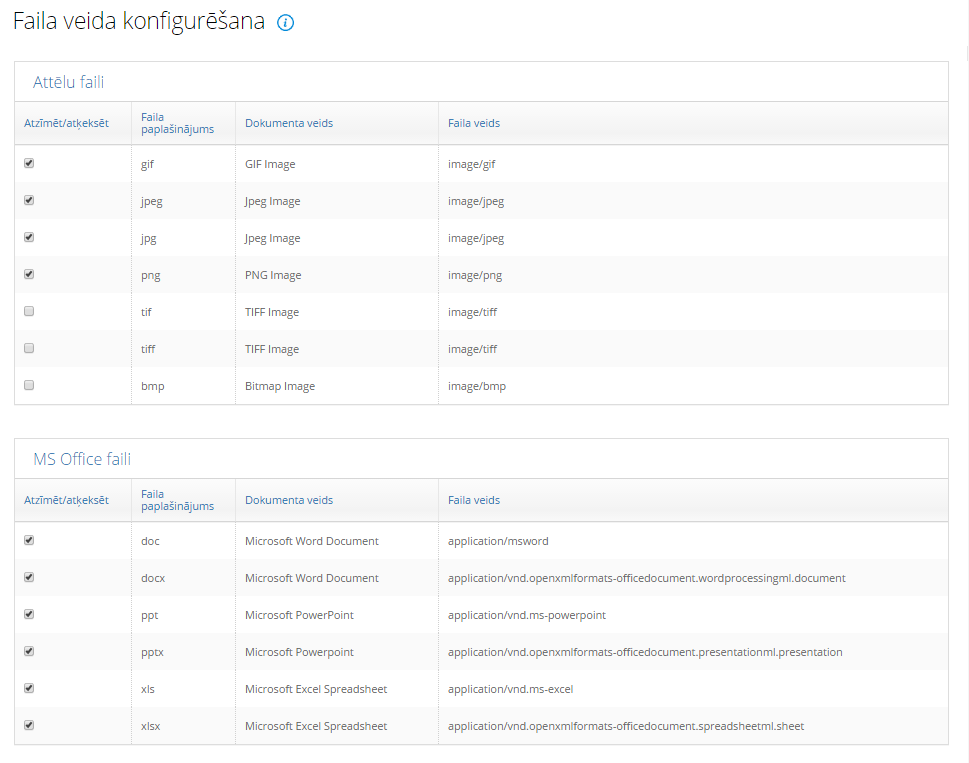 Atlases procesa gaitā lietotājiem un kandidātiem ir iespēja pievienot dažāda veida dokumentus - CV, atsauksmes, motivācijas vēstules un bildes. Visma EasyCruit Jūs varat norādīt, kādus failu veidus var pievienot sistēmā. Tas nodrošinās pārliecību, ka pievienotos dokumentus varēs atvērt un pilnvērtīgi apskatīt.