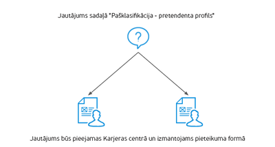 Pievienojot jautājumu sadaļā “Pašklasifikācija - kandidāta profils”, ieteicams jautājumu formulēt tā, lai uz to var atbildēt katrs kandidāts, jo šis jautājums būs pieejams katram kandidātu pašapkalpošanās portāla apmeklētājam. Piemēram: Jūs varat izveidot jautājumu “Kurā reģionā/rajonā Jūs vēlētos strādāt?”, “Kad varat uzsākt darba attiecības?” vai “Kā Jūs atradāt mūsu karjeras lapu?”.