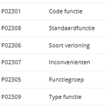 @Hanneke Wiersma - Wij zijn ook tegen een vergelijkbaar probleem aangelopen. Wij wilden o.a. de standaardfunctie P02308 (waar het functieprofiel in staat) toevoegen aan de medewerkerkaart en aan Self service. Zijn daar wel toe te voegen, maar halen geen gegevens op. Contact gehad met de Servicedesk hierover die ideeën gaven wat ik uit kon proberen om dit te doen. Toen vond ik zelf deze twee afgewezen ideeën op deze community, waarna toegegeven werd dat dit niet kon. Het kunnen tonen van de standaardfunctie in self s... - Visma CommunityOpent een nieuw venster Rubrieken uit referetietabellen beschikbaar maken ... - Visma CommunityOpent een nieuw venster Deze rubrieken zijn functie gerelateerd en niet medewerker/dienstverband gerelateerd. Ook Gemeente Eindhoven heeft mij verteld hier tegenaan te lopen. Voor nu gaan we dus maar een workaround met een eigen rubriek werken om het functieprofiel aan een functiecode te koppelen. Maar is dus veel extra werk om informatie te tonen die eigenlijk gewoon in het systeem zit.