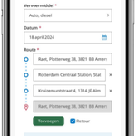 Daarna maakt de medewerker een keuze in het soort reis, bijvoorbeeld een dienst- of studiereis, kiest het vervoermiddel en legt de datum vast en registreert een vertrekpunt en eindbestemming. Het invoeren van postcode met huisnummer of zoeken op de naam van de locatie is voldoende. Vervolgens berekent de app automatisch het aantal kilometers en zet de kilometerdeclaratie door naar de leidinggevende van de medewerker.
