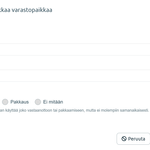 Monipuoliset suodattimet: Voit rajata näkymää tuoteryhmän, tuotetyypin ja mittojen (mikäli käytössä) mukaan. Suodattimet löytyvät oikean yläkulman painikkeen takaa. Painikkeessa näkyvä numero kertoo, kuinka monta suodatinta on aktiivisena.